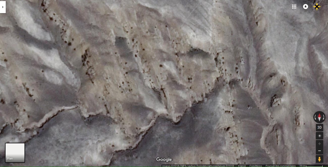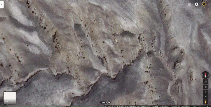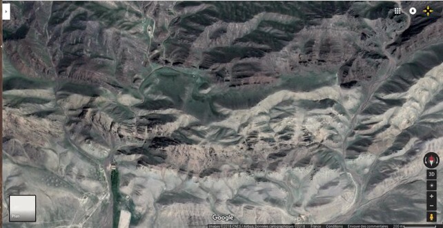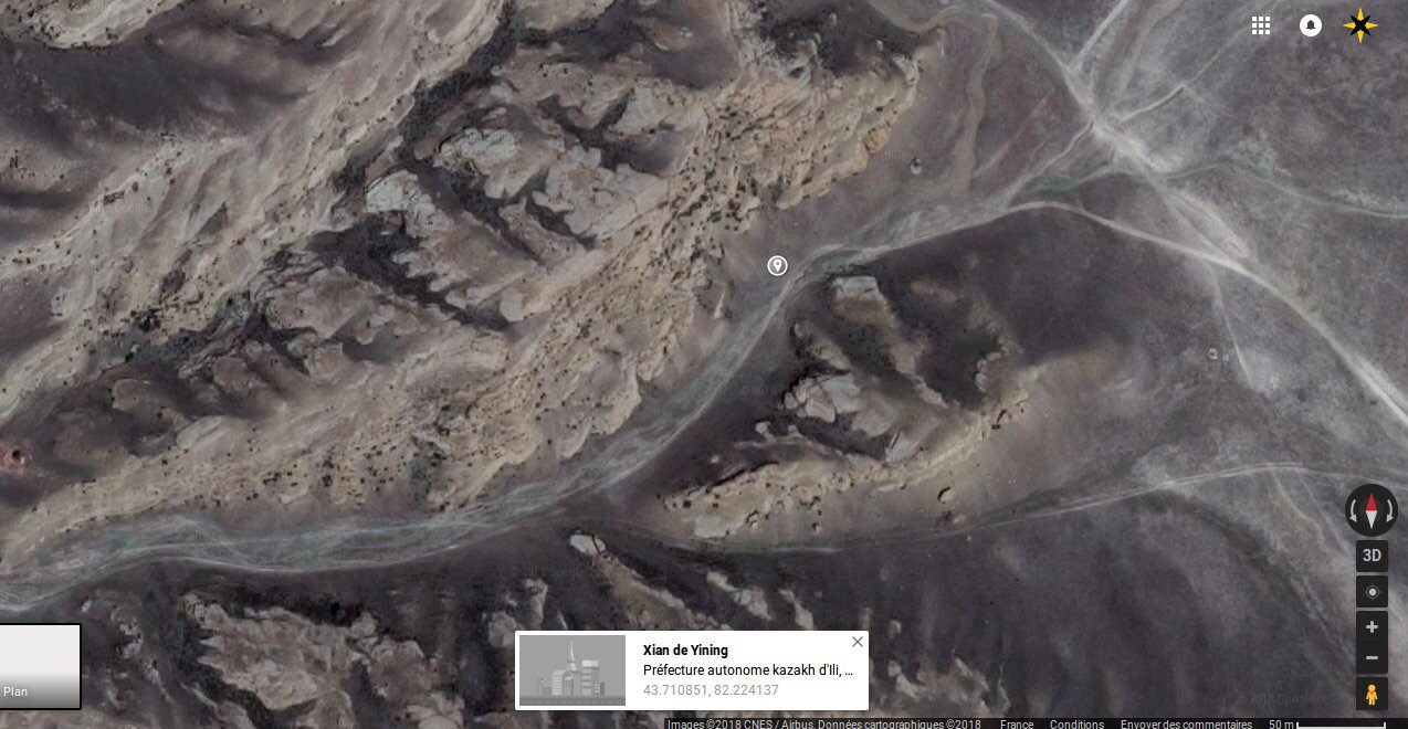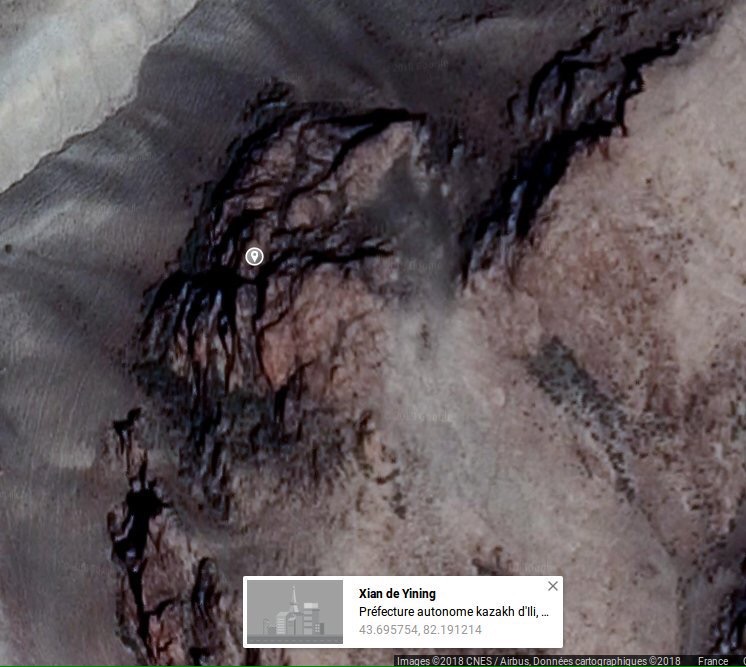 The uranium laogais are obvious thanks to pixel crosses censorship in Google satellite imagery. The main region is Yinin (Ghuljia) where the main “Huise” uranium mine is reported by other researchers, as pointed out earlier.