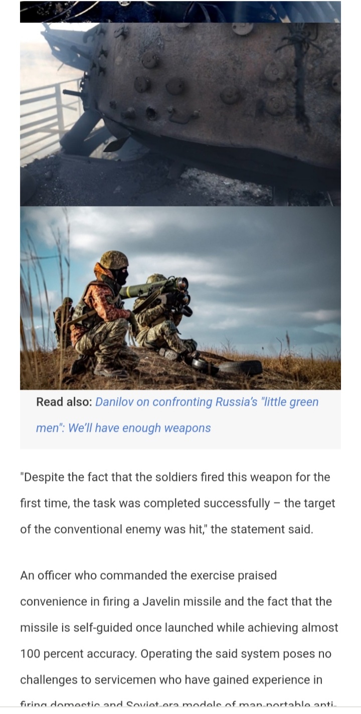 Ukraine has recently received foreign military support with among other things Javelin antitank missiles and fielded them in training against a tank target. All the data presented by the Ukrainian military confirms that these Javelins have depleted uranium warheads. The missiles weigh 50 pounds each (a bit more than 22 kilograms) and can travel a flabbergasting 1,5 km. The clouds above are literally carried by the warheads as they are fired (so the clouds are behind the soldiers before fire and pass in front of them after) and the darkening of the tank target is total.