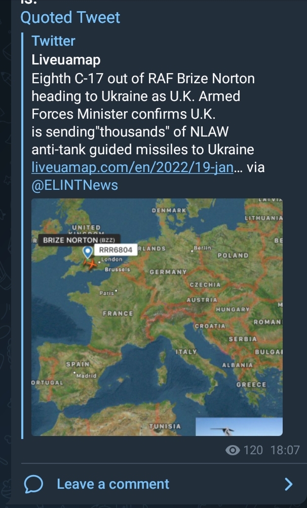 Update : more than 8 shipments. “Thousands” of NLAWs promised. Thousands of kilograms of depleted uranium…
