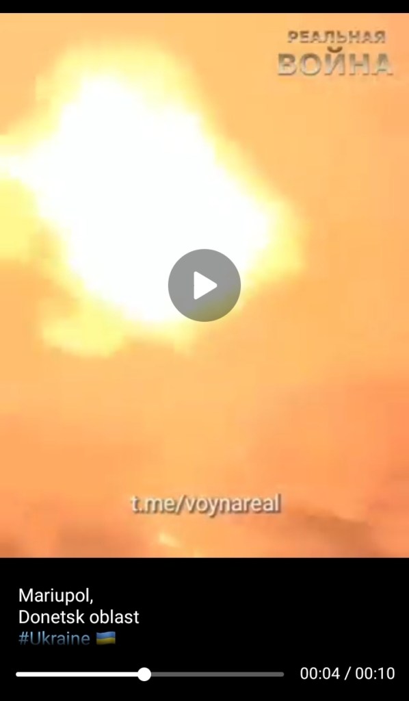 It’s a long dire fire with rising bullet-like fireballs indicating the tumours of the euthanized oncology patients were taking fire. This is confirmed also by the use by the Ukrainian military of such bombs. Blood in the explosion together with traces of “nep nep” powder used to liquefy. Pro Ukrainian source that also showed the bullet rifling of a Russian soldier that had gotten hand of an Ukrainian truck and camo.