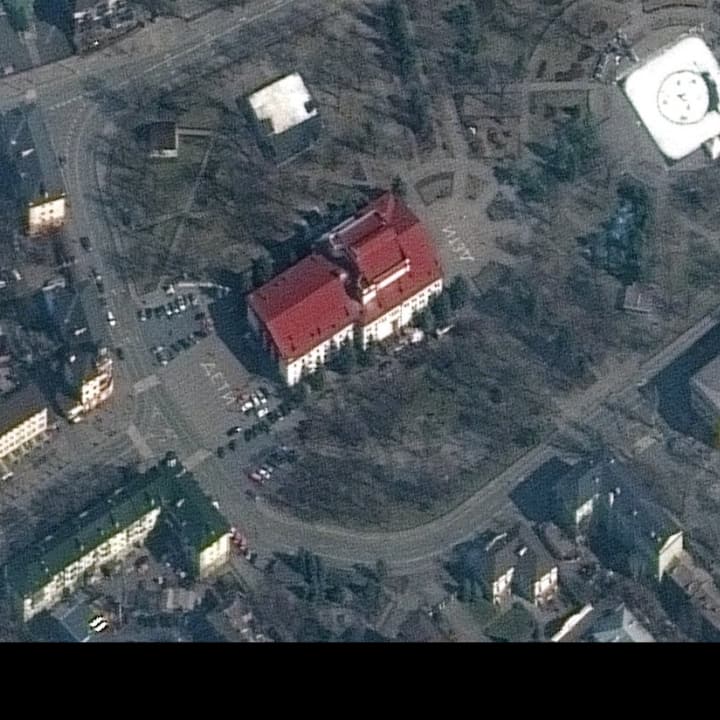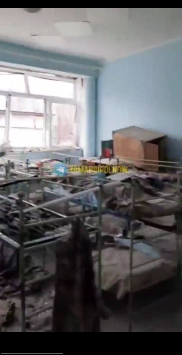 One theater used to “shield children” in Mariupol was an antitank weapon factory on the Aktion T4 principle, handled by the Azov battalions. The “deti” (children) sign on a side, the badly drawn kid face on another… in fact a crematory oven area. Which is blatant after the Russian strike with the black ash remains in the middle.