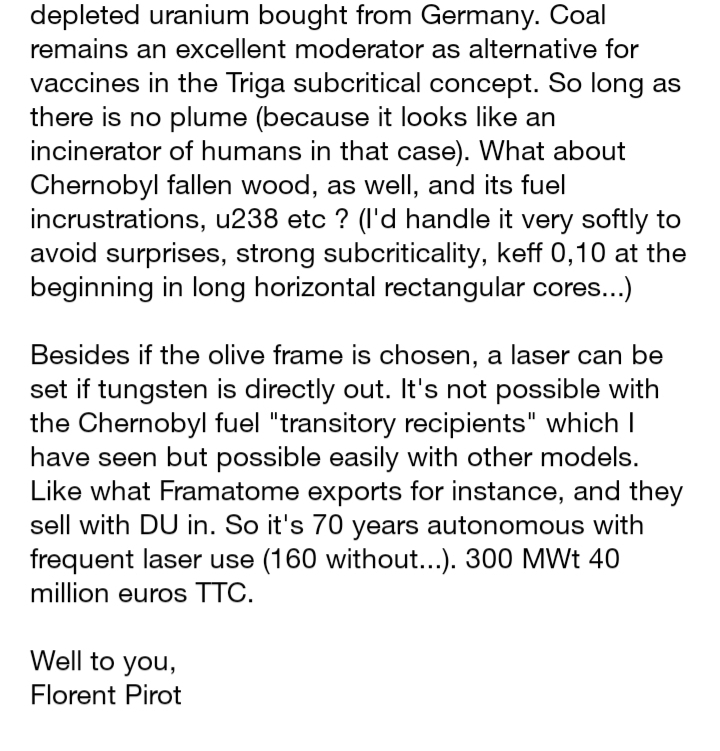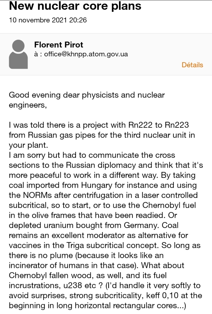 The contract between Westinghouse and Ukraine’s Energoatom was signed in the middle, just after my first email. “Wood” was interpretated by these nazis the way it was used in Birkenau : gassed bodies (rigidified by Fermionic condensation) before the cremation. They went for it. Did it massively. That’s what happened and is certainly still happening.