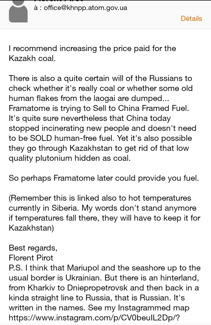 I did not knew that when emailing the Ukrainian nuclear power plant where Westinghouse is bringing its nuclear core technology last November trying to make suggestions regarding energy shortages in winter. US involvement in Ukraine, the two countries that always vote against the UN resolutions denouncing nazism… I really emailed naively thinking I was writting to enlightened people linked to a modern US private company.
