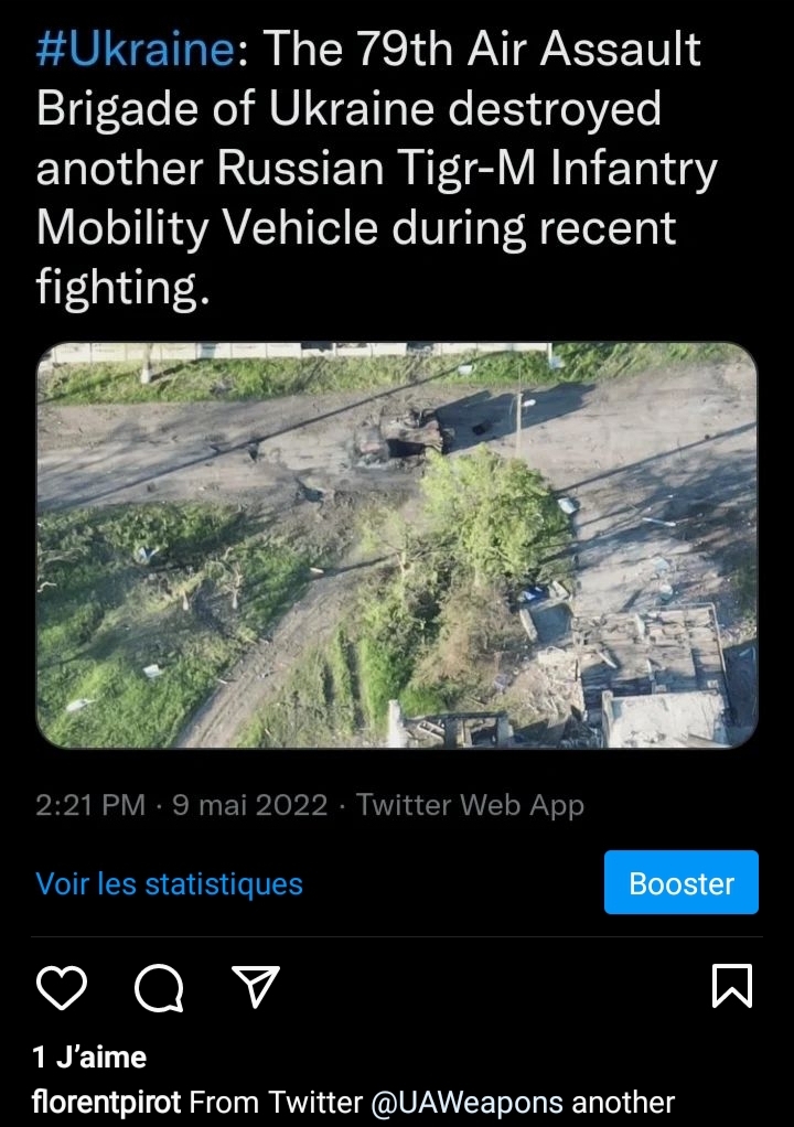 But on May 9th another Russian Tigr-M magnet unit was destroyed by an Ukrainian strike :