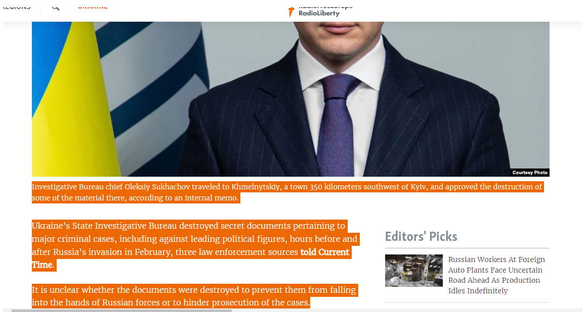 The RFERL scoop on the destruction of files in Khmelnitskyi by Ukraine’s State Investigation Bureau is extremely interesting.