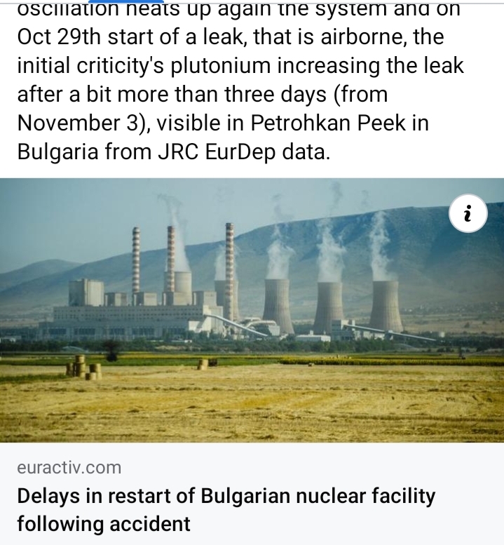 What happened in Kozloduy NPP is worth mentioning there. Although there is hopefully an investigation ongoing (Were Serbian victims of DU used for the crematory fuel ?), which might have been aborted by the assassination of a mayor in another Bulgarian city after the nuclear burst and plume drift. But it’s possibly the mayor that allowed in his city the crematory premises that eventually resulted in the nuclear accident.