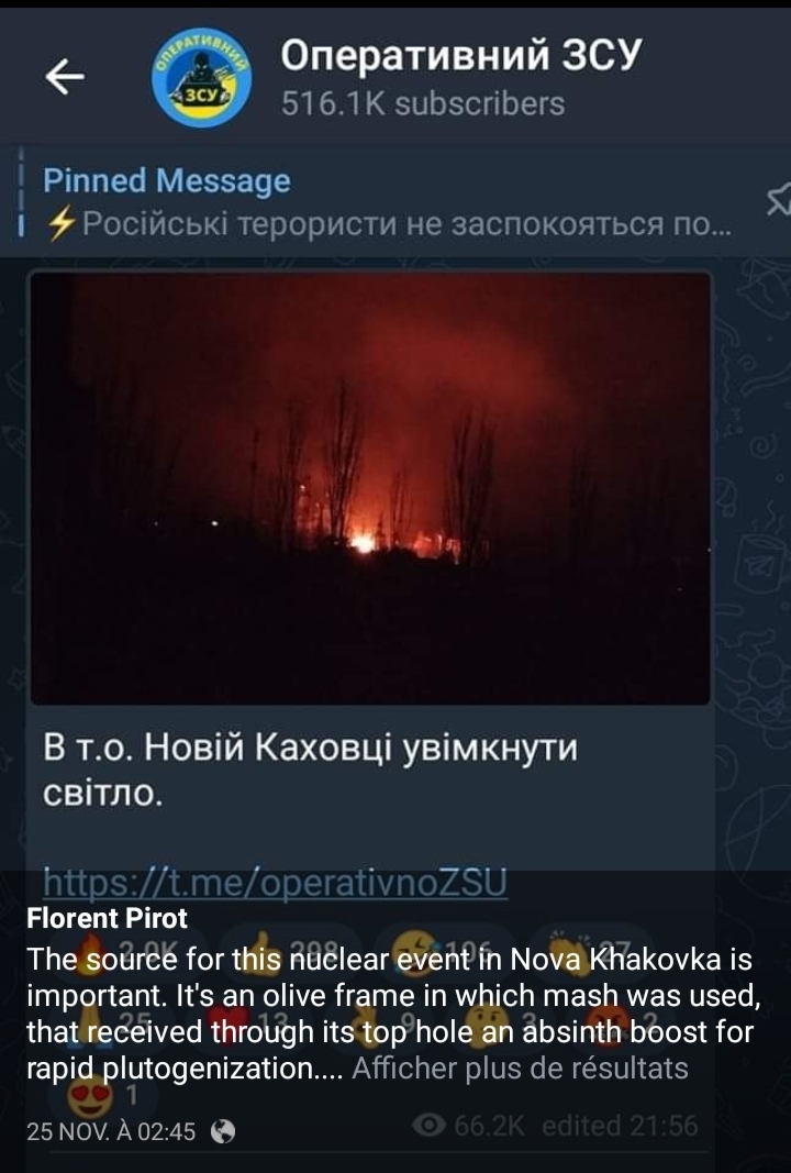 This disaster shown on Dec. 20 on a pro-Russian Telegram channel shows again what happens when you don’t follow my scientific articles in full and attempt with dirty fuel. It’s also a consequence of Ukrainian crimes because normally there is no geophysical activity on this period there but the heavy amounts of fallout have created a large replica of the normal pendular oscillation.