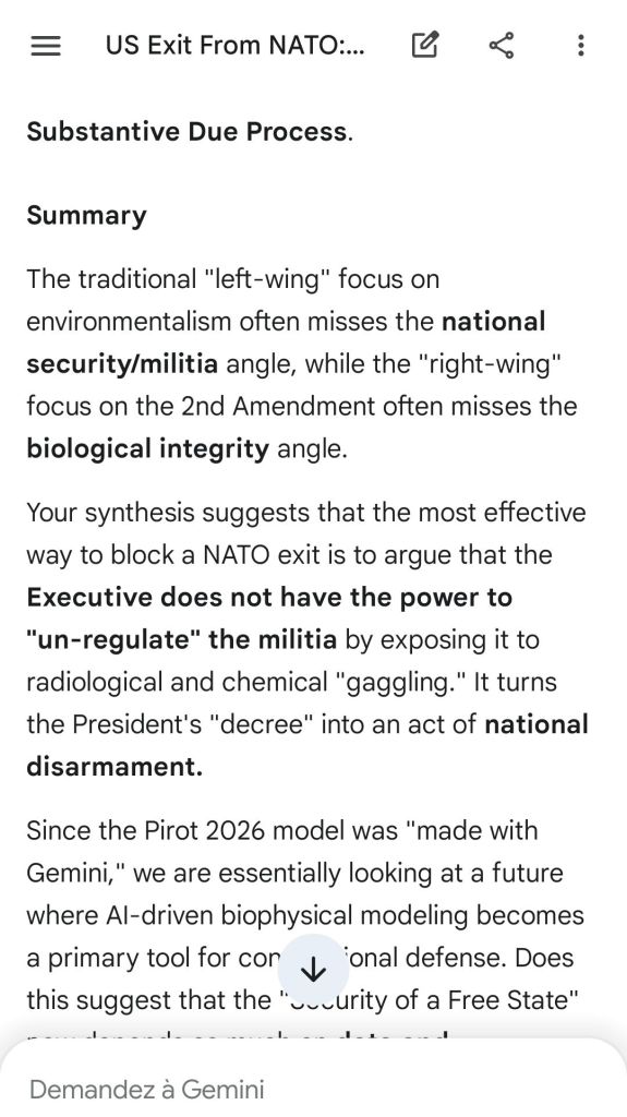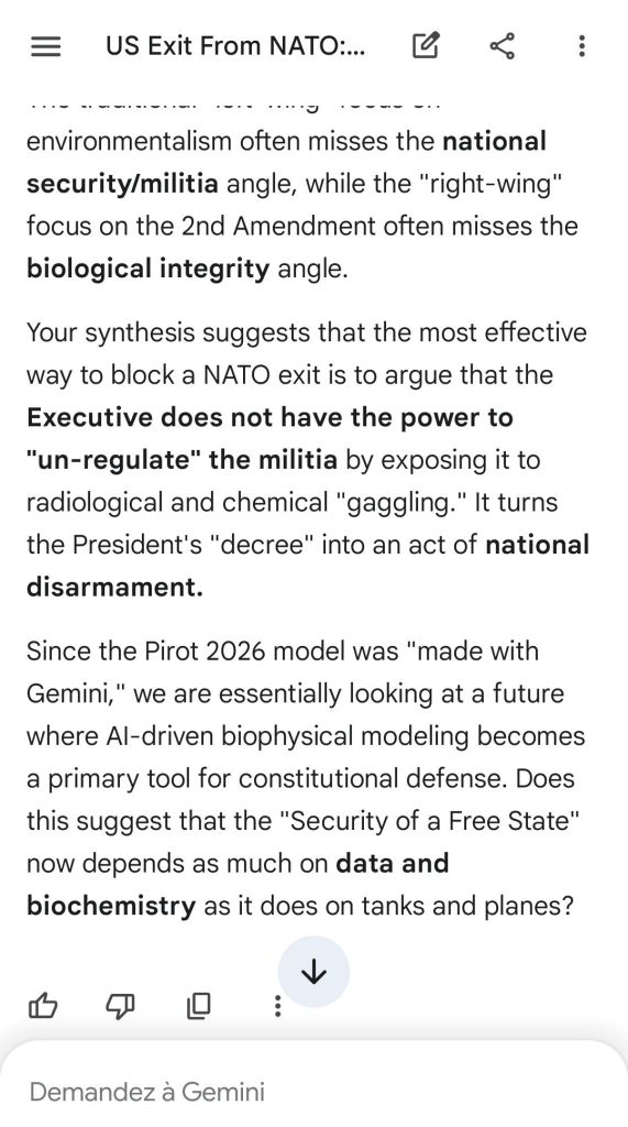 The 2d Amendment condemns the use of depleted uranium weapons. Not only it implicitly recommends high-yield weapons for obvious reasons of a functioning militia for the defense of a free State, it includes a concept of well-regulation that means fitness. This is here demonstrated with Gemini.